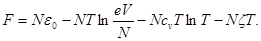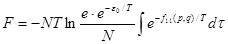 и T в показателе подынтегрального выражения сократится. Преобразование же дифференциалов этих переменных, входящих в dt, даст множитель Tl /2 , который выносится за знак интеграла. Интегрирование по колебательным координатам q производится по той области их значений, которая соответствует колебаниям атомов внутри молекулы. Поскольку, однако, подынтегральная функция быстро уменьшается с увеличением q, то интегрирование можно распространить на всю область от ¥ до +¥, как и для всех импульсов. Сделанная нами замена переменных не изменит тогда пределов интегрирования, и весь интеграл будет некоторой не зависящей от температуры постоянной. Учитывая также, что интегрирование по координатам центра инерции молекулы дает занимаемый газом объем V, получим в результате для свободной энергии выражение вида