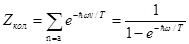 Вычисление колебательной статистической суммы Zкол производится элементарно. Вследствие очень быстрой сходимости ряда суммирование можно формально распространить до u=¥. Условимся отсчитывать энергию молекулы от наиболее низкого (u = 0) колебательного уровня, т. е. включаем ħw/2 в постоянную e0 в