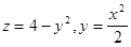 Поверхность, ограничивающая тело сверху, имеет уравнение z=4y2 . Область интегрирования D получается в результате пересечения параболы ![]()