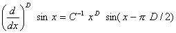 Видим, что экспонента после фрактального интегрирования приобрела нелинейный множитель. Постоянные интегрирования здесь не выписываем, если судить по дробному интегродифференциальному исчислению [11], вопрос о постоянной интегрирования неоднозначен. Интегрирование от тригонометрических функций продемонстрируем на синусе. Представляя функцию синус в экспоненциальной форме и применяя результат (12), в итоге получаем