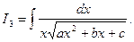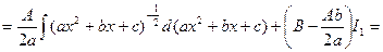 В числителе интеграла I2 выделяется дифференциал выражения, стоящего под знаком радикала, и этот интеграл представляется в виде суммы двух интегралов: