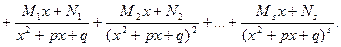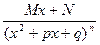 Здесь А, a, p, q, M, N– действительные числа, а трехчлен не имеет действительных корней, т. е. p2 /4q < 0.